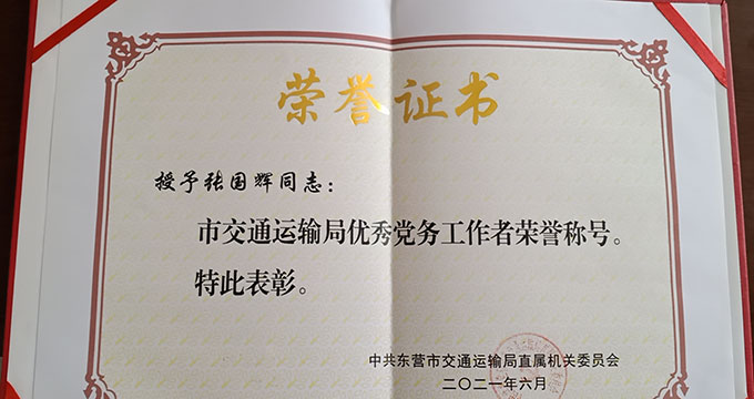 • 張國輝榮獲“市交通運輸局優秀黨務工作者”